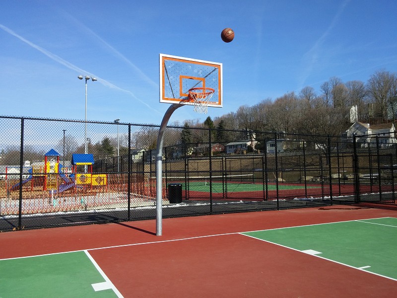 Beside the playground, basketball and tennis courts were renovated. There is even a small skateboard park here now.